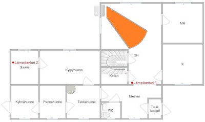 Detta är över 50år gammal 120m2 L-form hus med 2 våningar i Rovaniemi, Finland  - det är på samma nivå nära Polcirkeln som Jokkmokk i Sverige. Vi användar huset som en sommarstuga.
