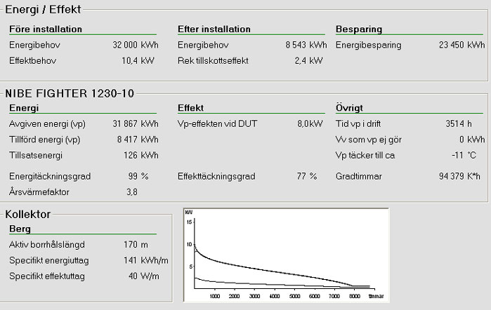 Nibe 1215-8,5 170m aktivt borrdjup värmer ett hus på ca 230m2 i katrineholm (Sörmland)