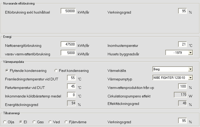 - Uråldrig luftvatten värmepump. Total elförbrukning 13 000 kWh per år.